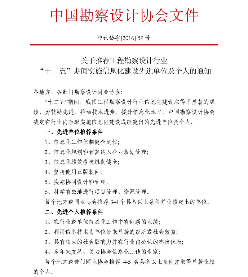 附件:關(guān)于推薦工程勘察設(shè)計(jì)行業(yè)“十二五”期間實(shí)施信息化建設(shè)先進(jìn)單位及個(gè)人的通知