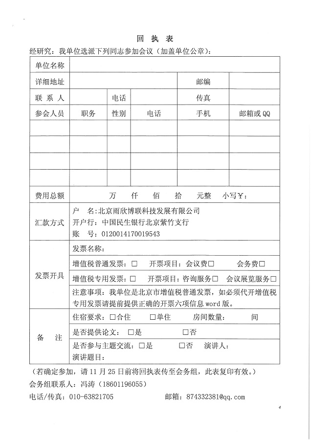 會務(wù)組聯(lián)系人:馮 濤(18601196055) 010-63821705